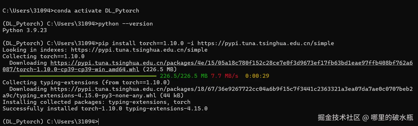 pip install torch==1.10.0 -i https://pypi.tuna.tsinghua.edu.cn/simple
