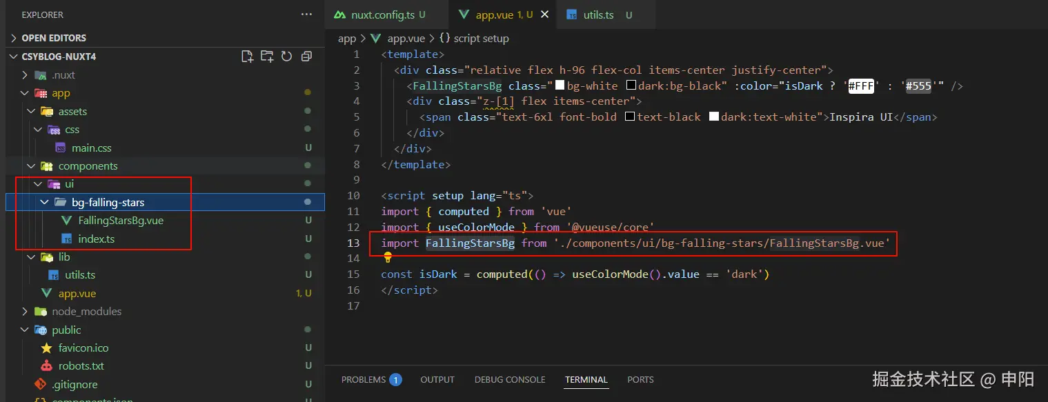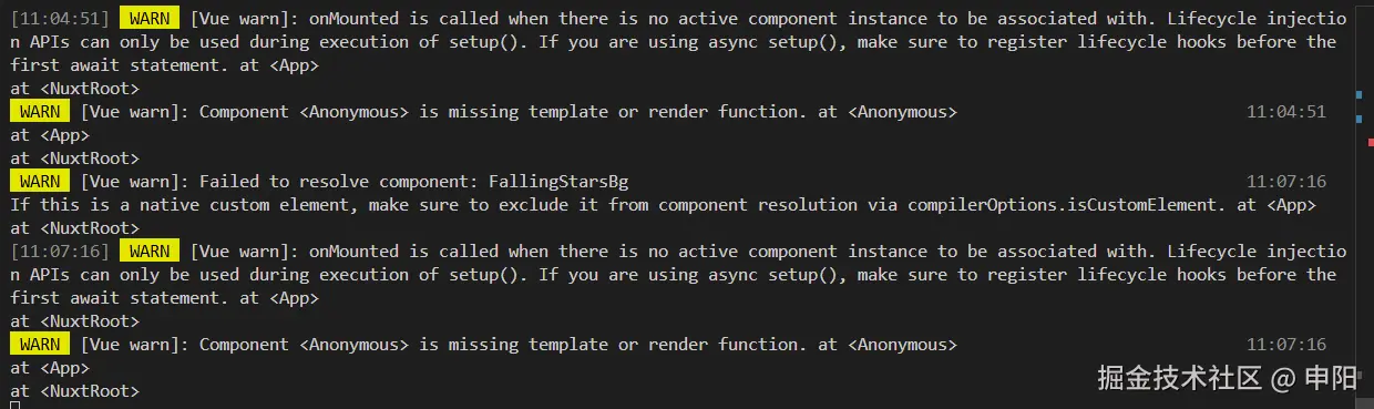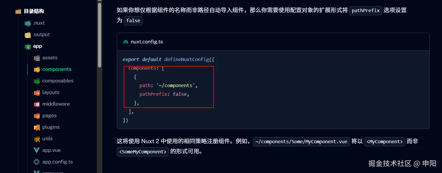 nuxt默认的自动导入是按照目录拼接的,如果我们不做修改,默认自动导入组件应该是,UIBgFallingStarsFallingStarsBg。这不是我们期待的结果,这里可以修改配置直接使用组件名称作为全局组件名,而不叠加路径参数。