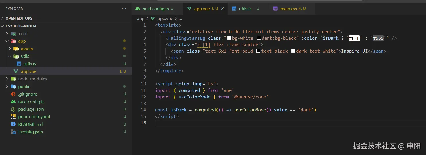 到这里发现,我们之前并没有定义 main.css,但是我为了让 vscode 有代码提示,加过一个 tailwindcss,这个文件只是起到了让编辑器能够读到指令提示。并没有真正的引入项目中。