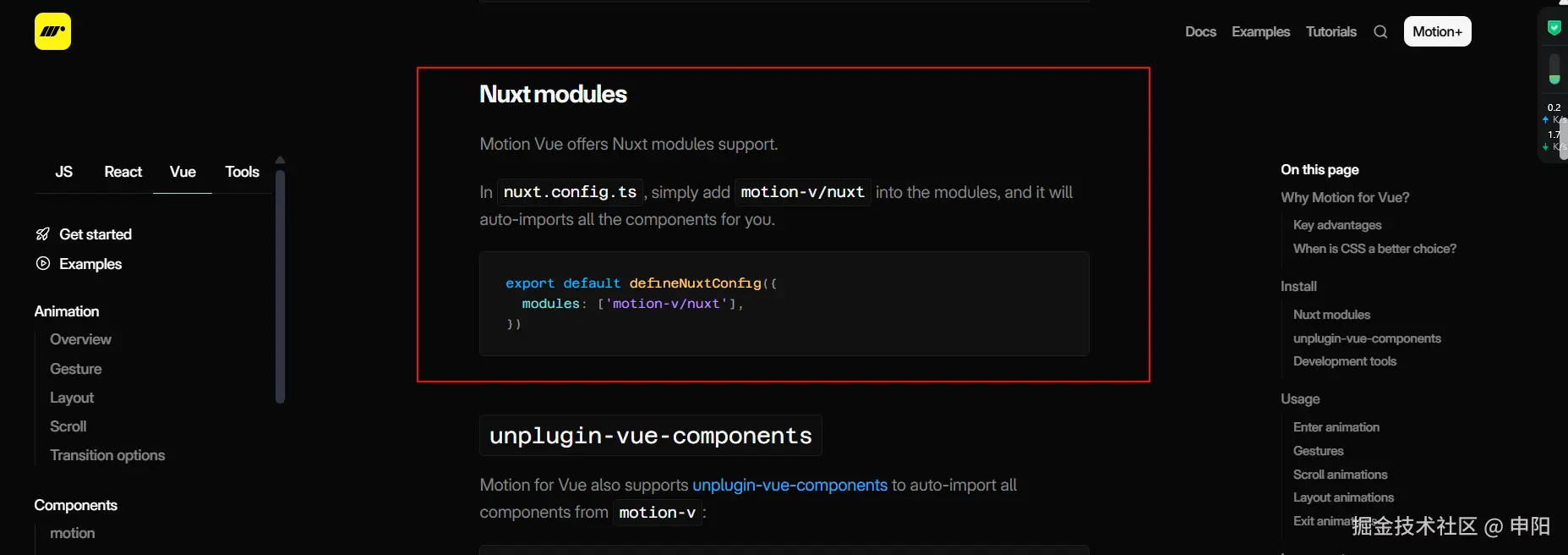 按照此指南在Vue或Nuxt上设置motion-v。 motion.dev/docs/vue