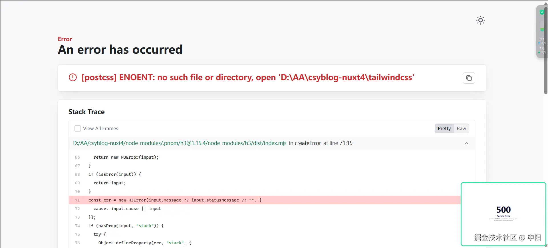 tailwindcss,导致这里找不到。那我们直接改成通过官网引入方式再试一下。直达链接:tailwindcss.com/docs/instal...