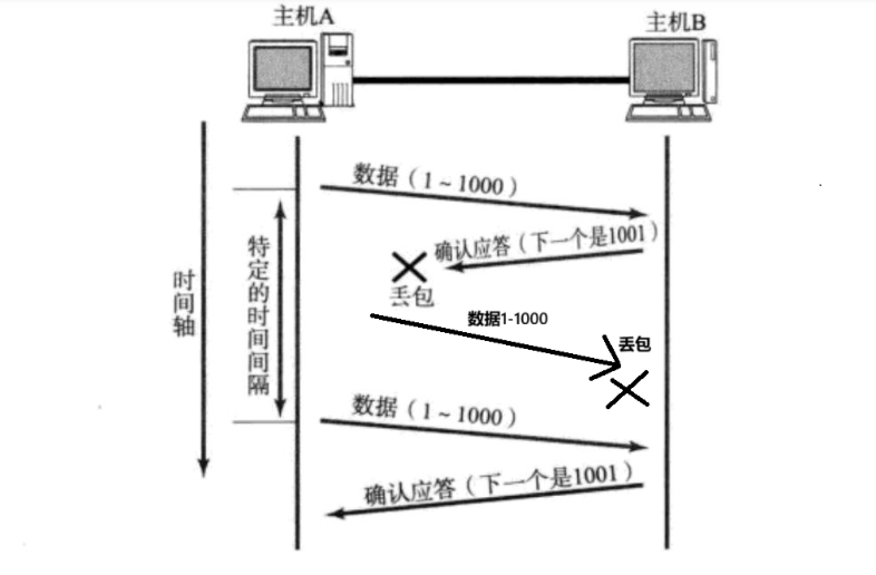 如果 发送端主机连续三次收到了同样一个 "1001" 这样的应答, 就会将对应的数据 1001 - 2000 重新发送;