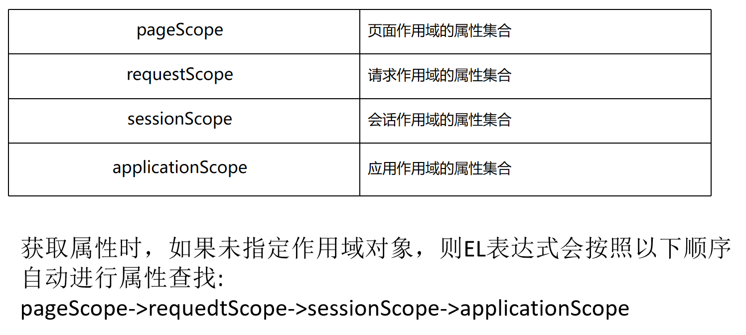 <%--EL表达式支持省略作用域对象获取属性值,EL表达式会自动在作用域中查找属性值,按照从小到大的顺序进行查询,如果所有作用域中都获取不到则获取到null值