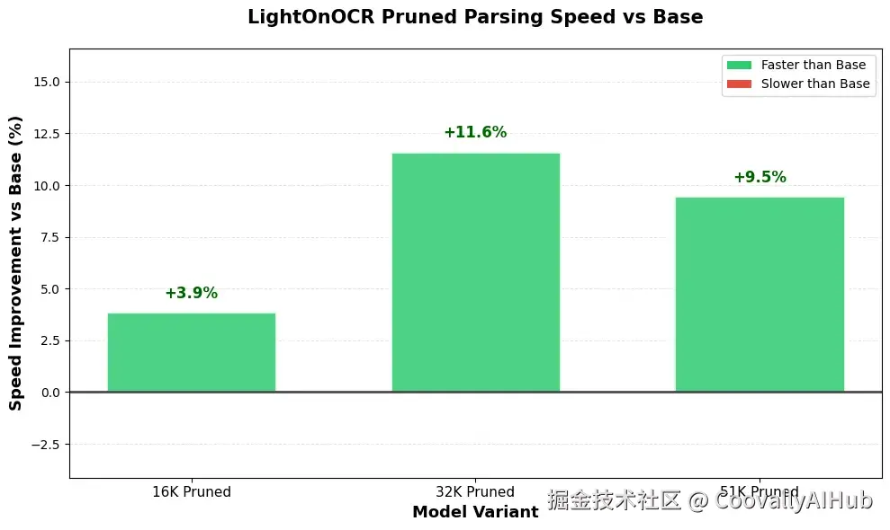 LightOnOCR还提供另外两个变体版本,分别具有32k和16k修剪词汇表,为欧洲语言提供额外加速,同时保持几乎相同的准确性。