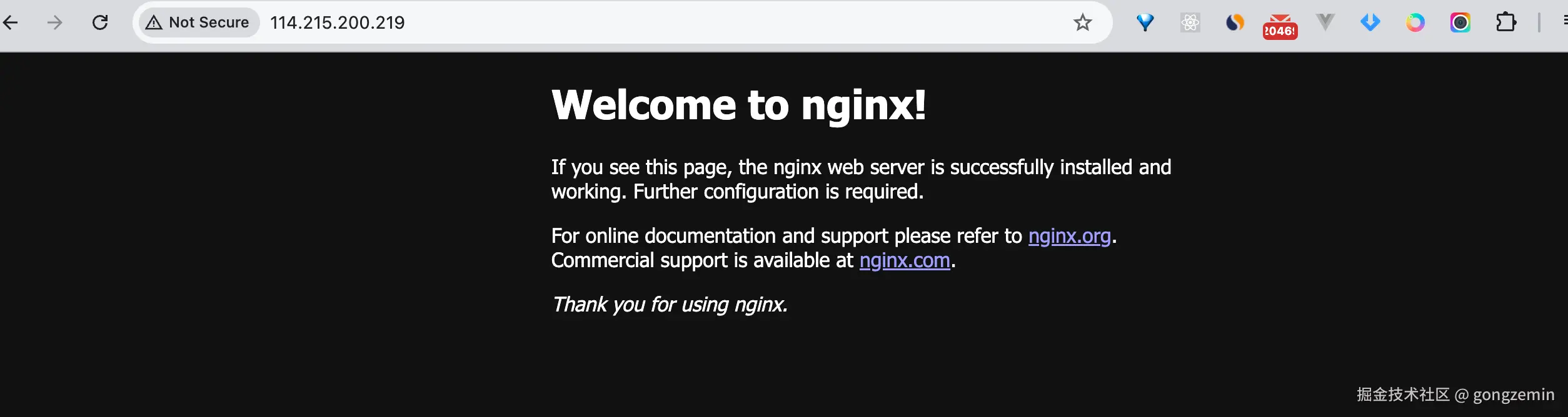 让Nginx 服务器中平滑重启(重新加载配置文件),作用是让 Nginx 在不中断服务的情况下应用新的配置,然后我们再访问我们公网IP,就可以访问应用了