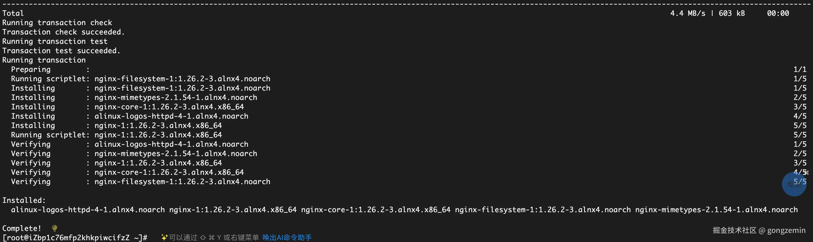 执行命令 dnf install nginx -y 或者yum install nginx -y