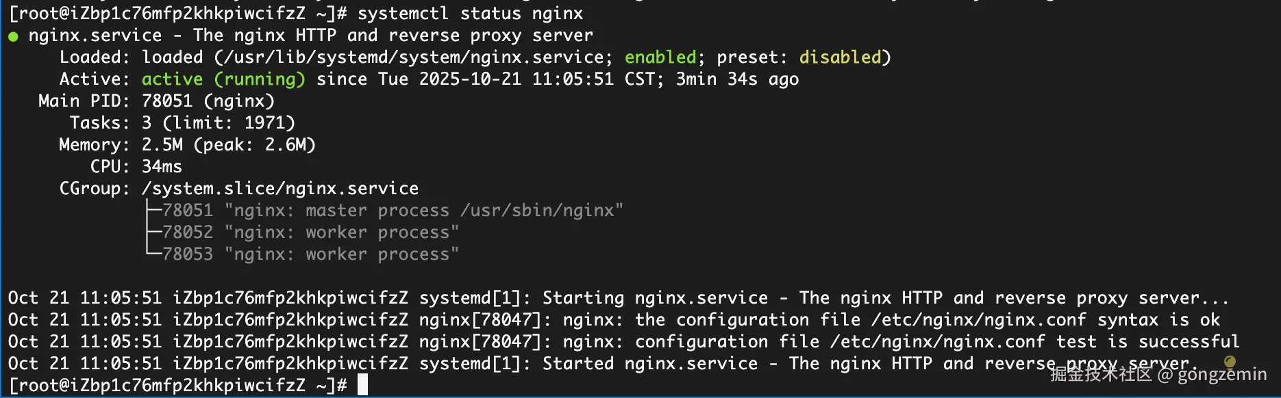 看到输出nginx.service - The nginx HTTP and reverse proxy server和Active: active (running)(绿色),说明我们的Nginx已经启动成功了