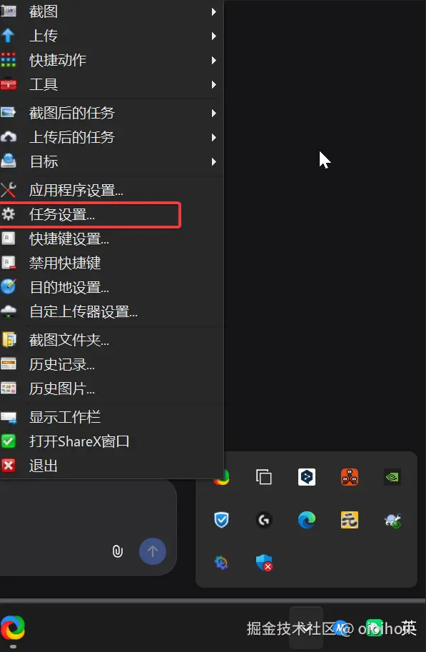右键点击系统托盘的ShareX图标,选择"任务设置"。