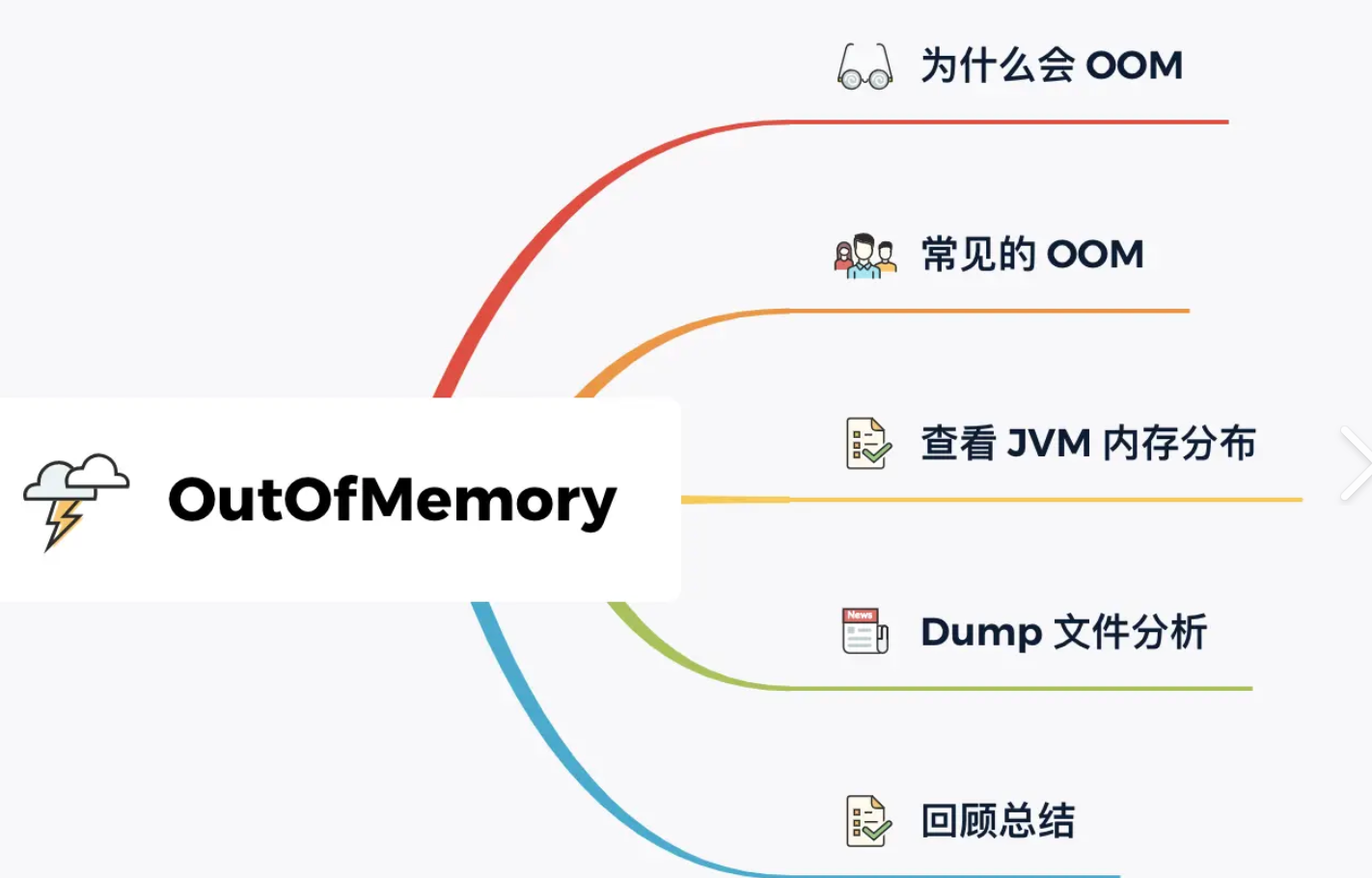 **堆内存溢出**:对象创建过多或内存泄漏。