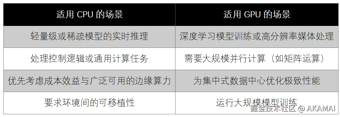 表1:CPU与GPU适用场景对照