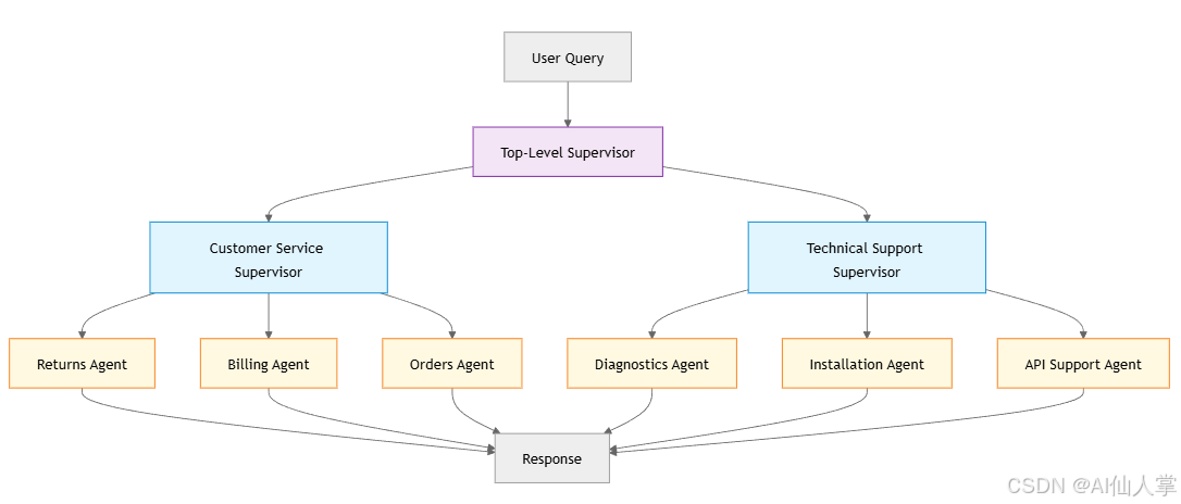 监督智能体管理着自己的专业智能体团队,为复杂的工作流程创建嵌套结构。