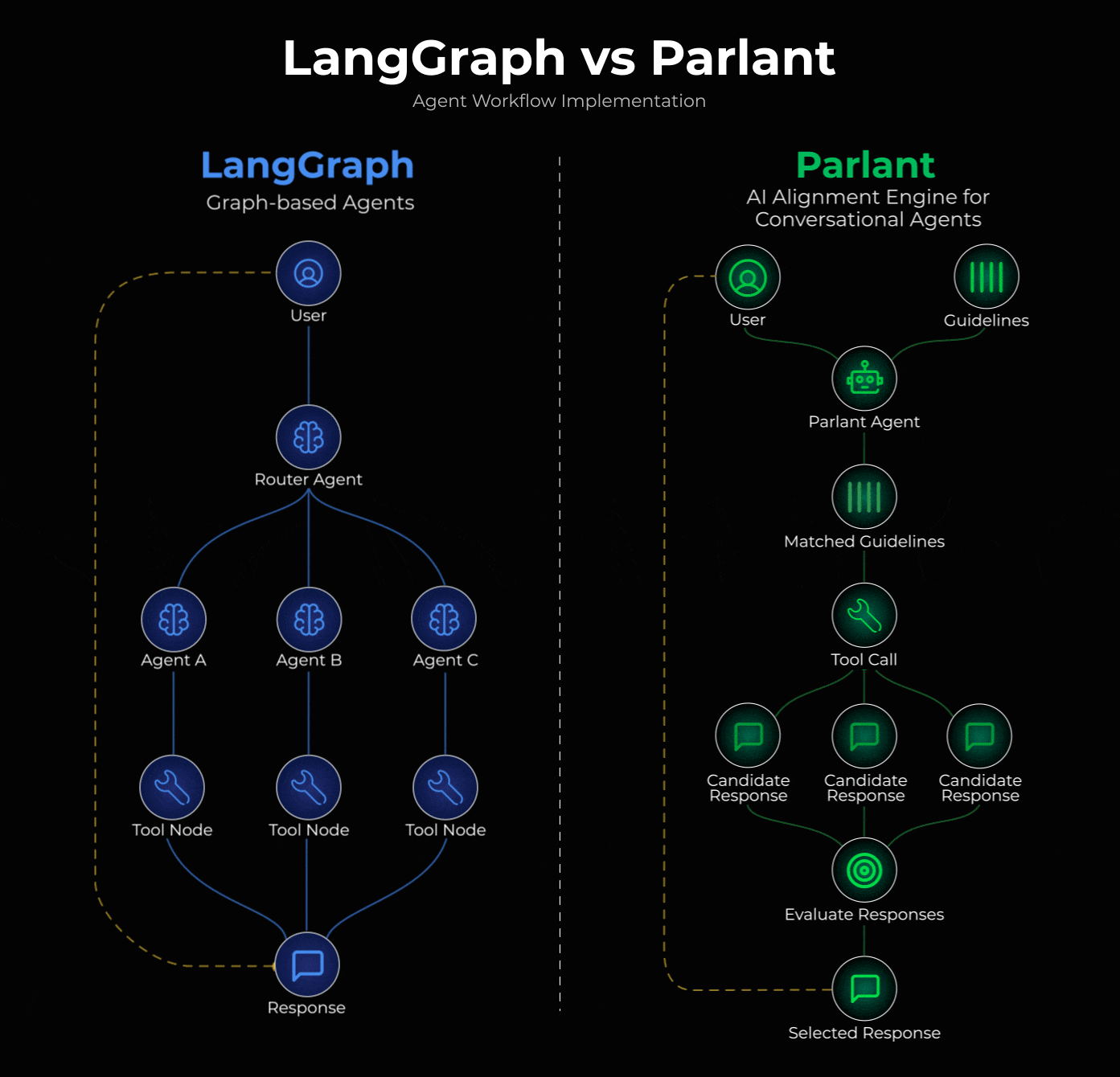 诚然,这些都是合理的使用场景,在这些场景中,LangGraph可能会产生出色的结果,且其计算开销远低于Parlant所投入的(Parlant的投入是为了在真实的对话环境中最大限度地提高准确性和用户体验)。