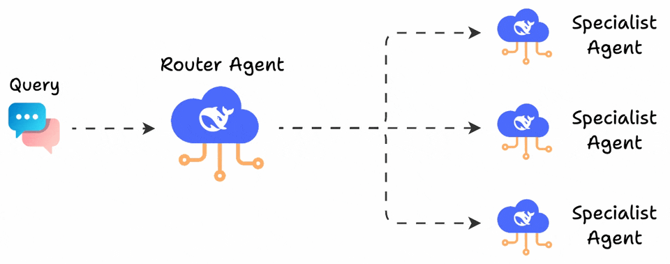 在这里,控制器代理将任务路由到正确的专家。例如,用户对金融的查询会转到FinAgent,对法律的查询会转移到LawAgent。
