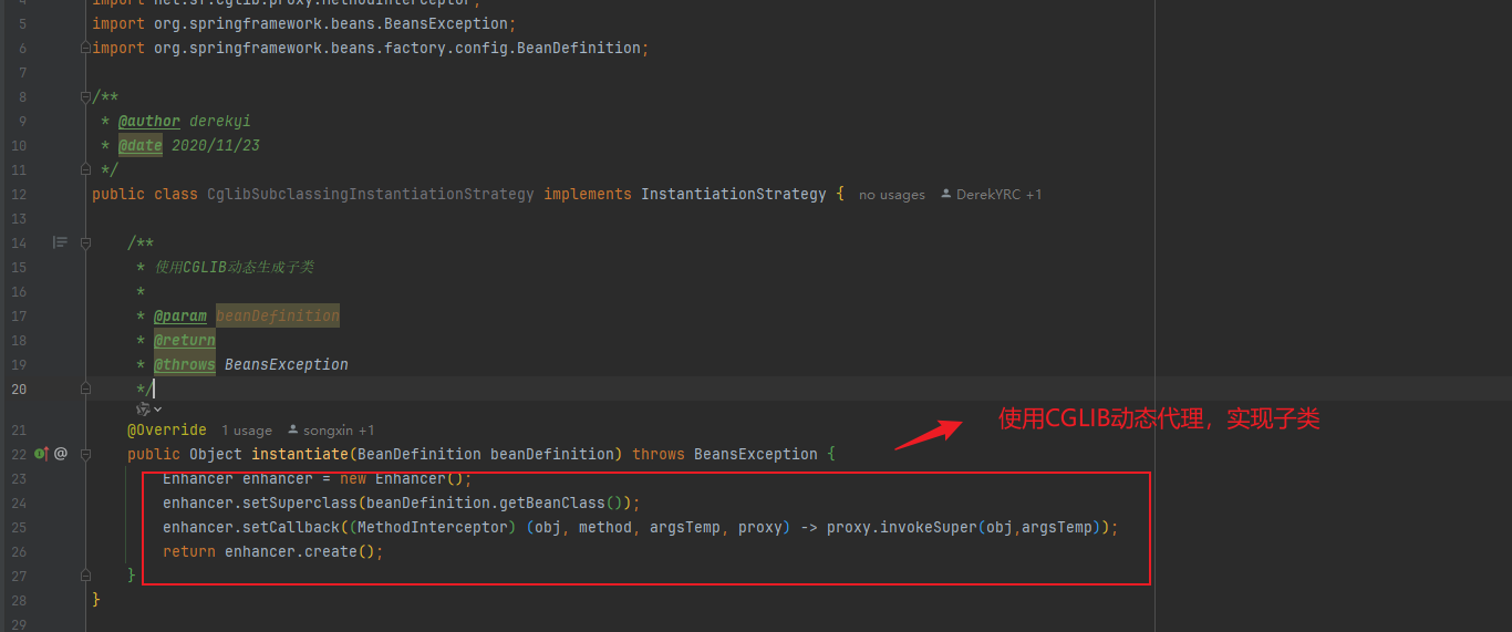 - CglibSubclassingInstantiationStrategy,使用CGLIB动态生成子类