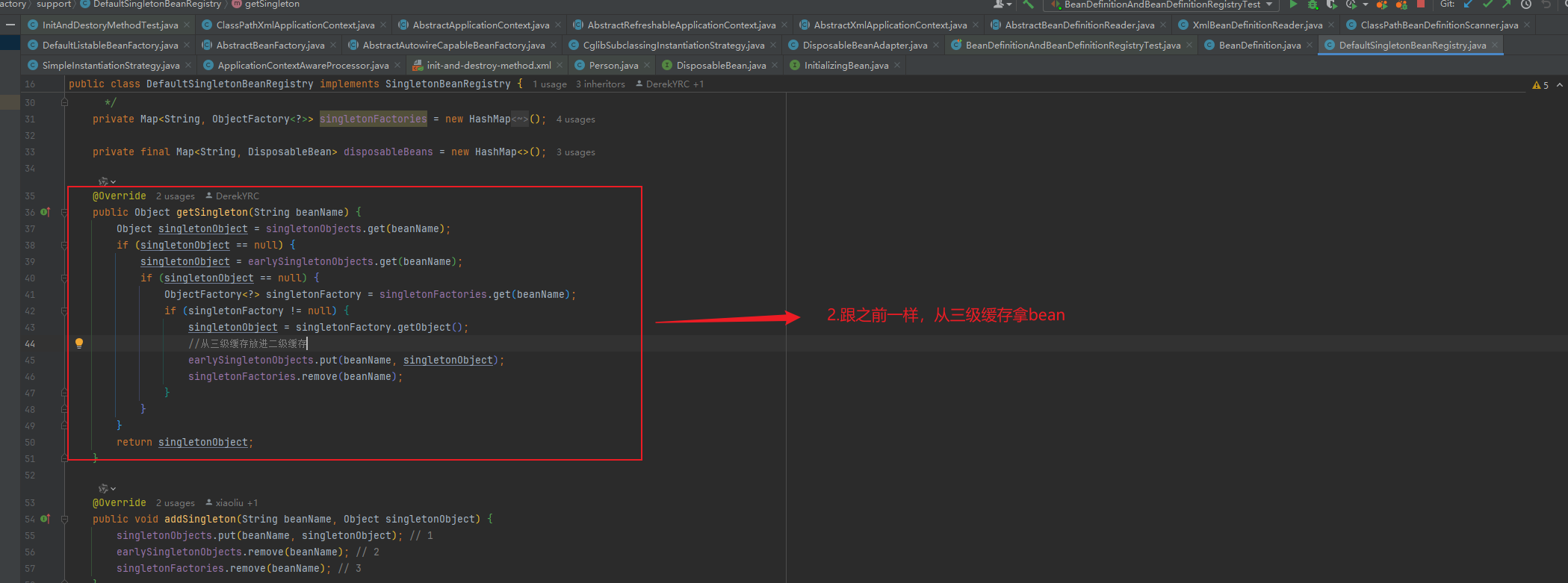 2.2 为解决循环依赖问题,将实例化后的bean放进缓存中提前暴露