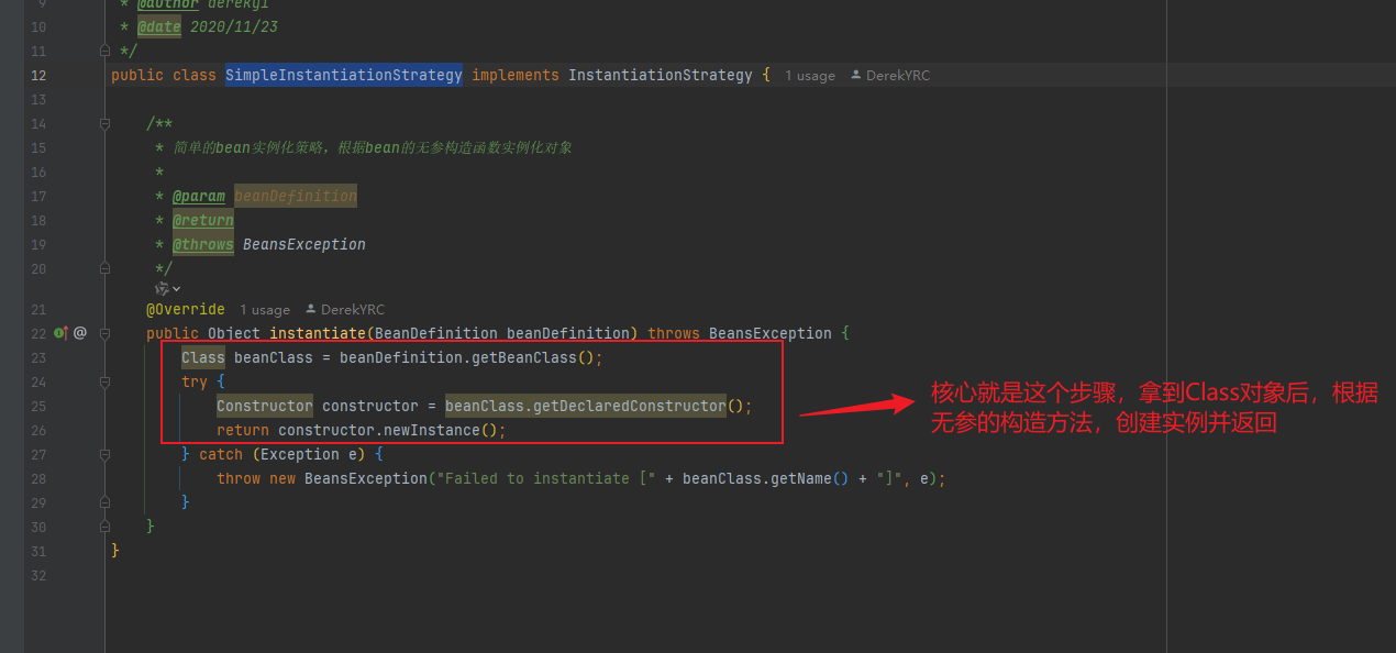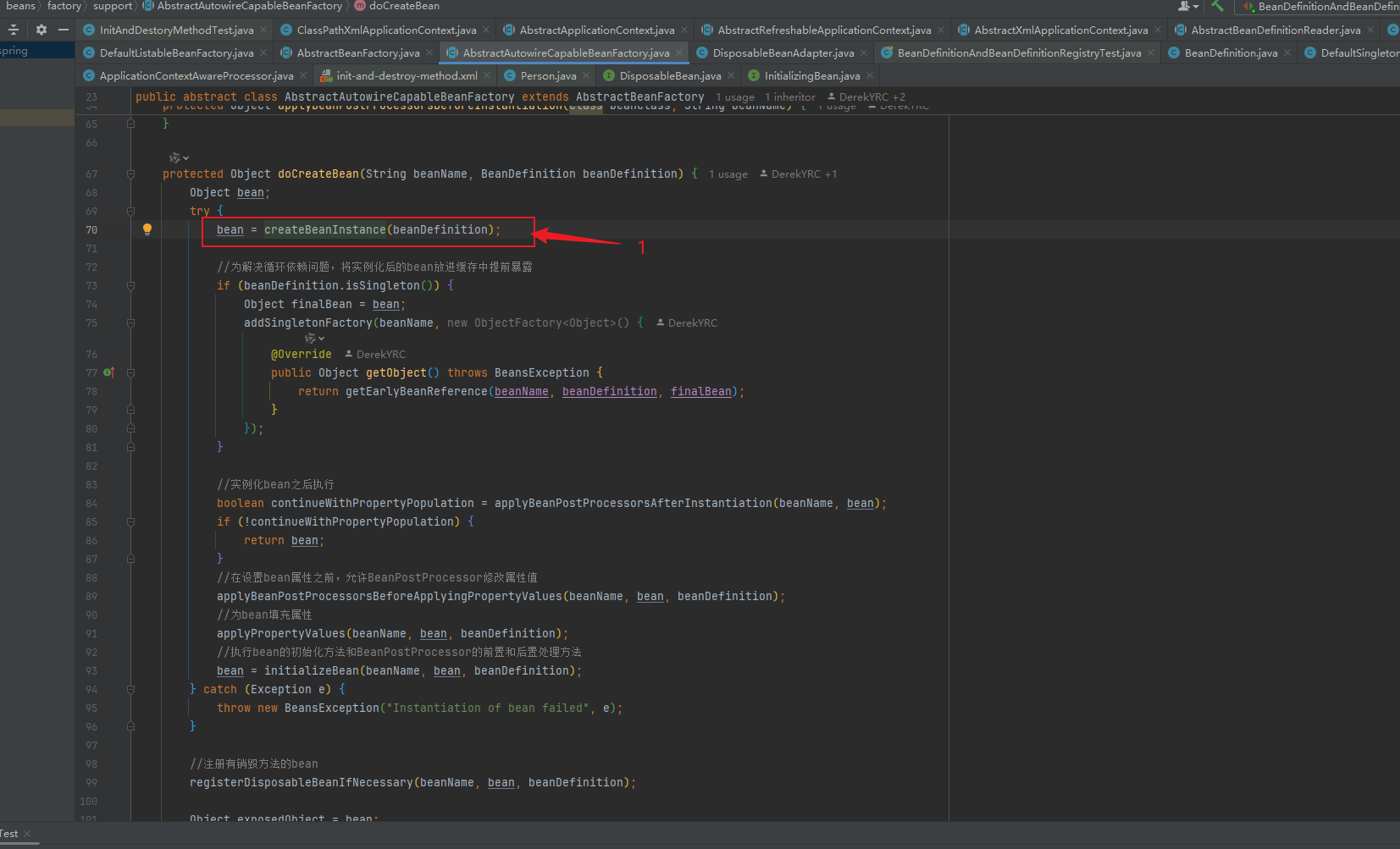 现在bean是在AbstractAutowireCapableBeanFactory.doCreateBean方法中用beanClass.newInstance()来实例化,仅适用于bean有无参构造函数的情况。