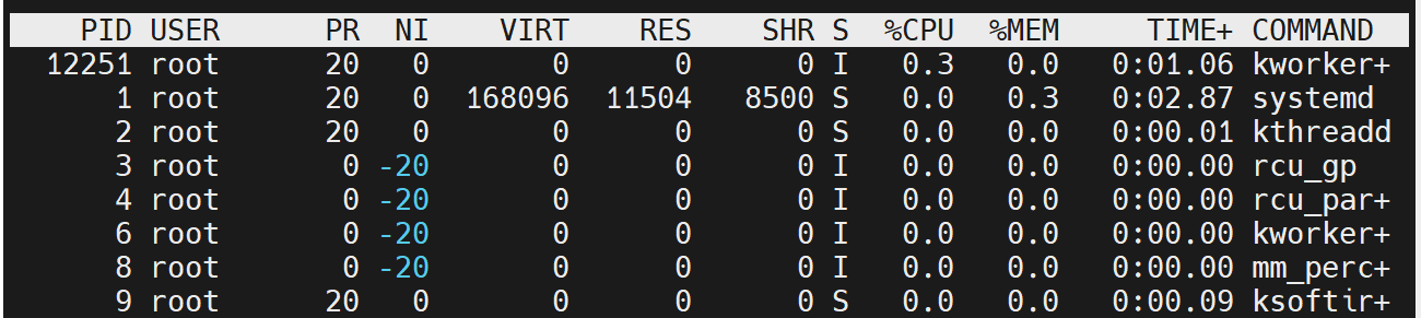 进程的 启动命令 (如 java -jar app.jar、nginx,可按 c 键显示完整命令,排查异常进程) |
