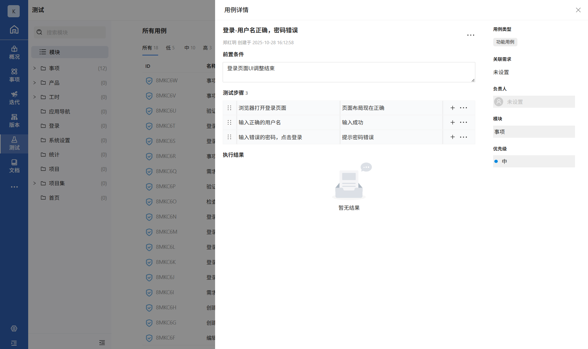 | 关联需求 | 若当前用例时来自某个需求,可以在此处进行关联 |