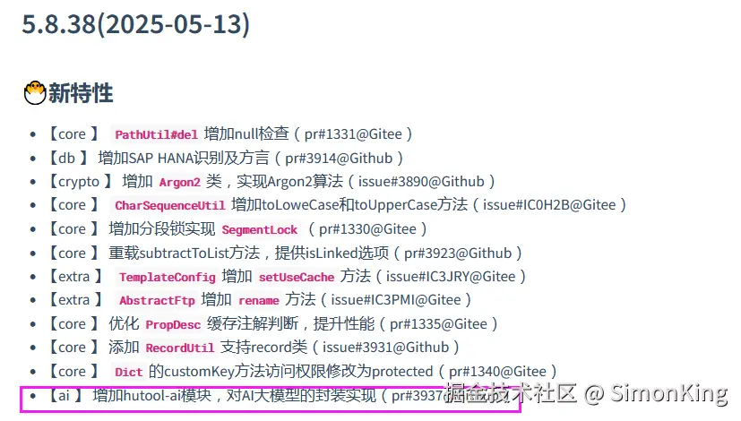 我们暂且不去评论。今天来介绍一下被收购后新增的一个全新模块Hutool-ai,融合了主流的大模型,不再依赖框架,调用大模型就像调用一般方法一样简单,降低使用门槛。