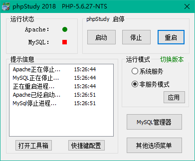 但是命令行可以启动,命令启动后phpstudy也显示"启动"状态了