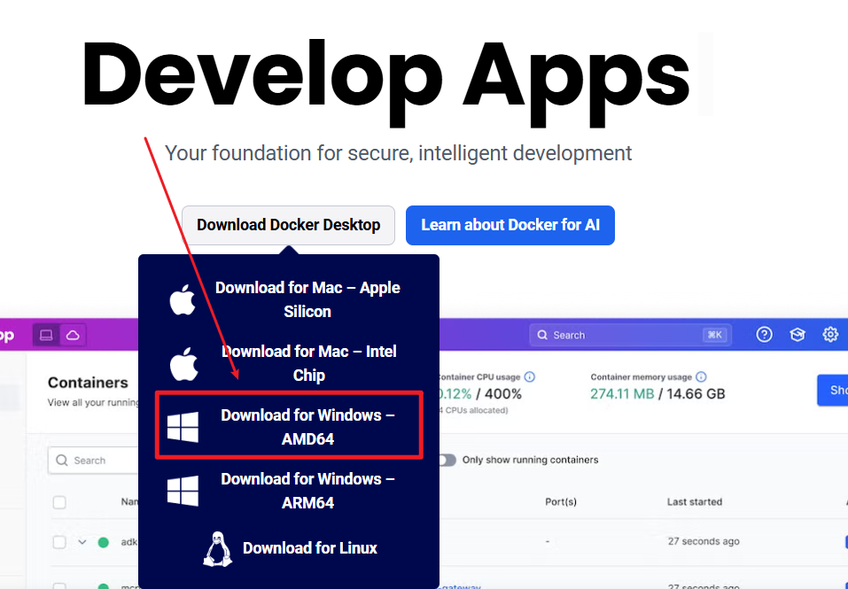 首先进入Docker官网下载Docker桌面版:Docker官网