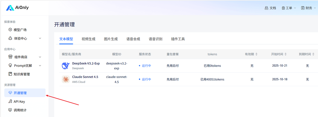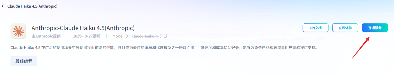 使用Claude Haiku 4.5模型前记得先前往AiOnly控制台开通此模型。
