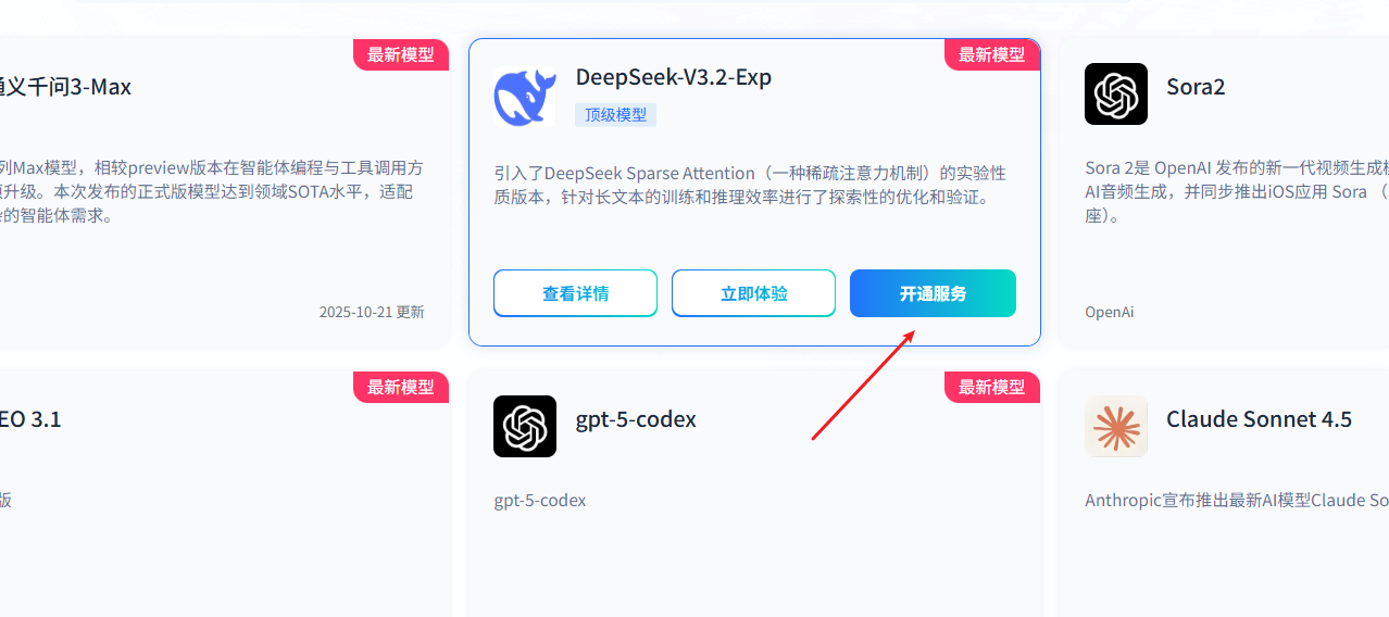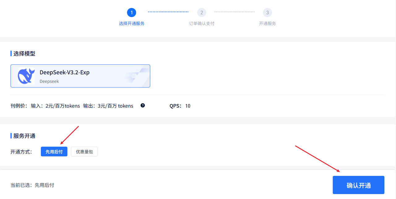 第二步:开通模型(以DeepSeek-V3.2-Exp为例)