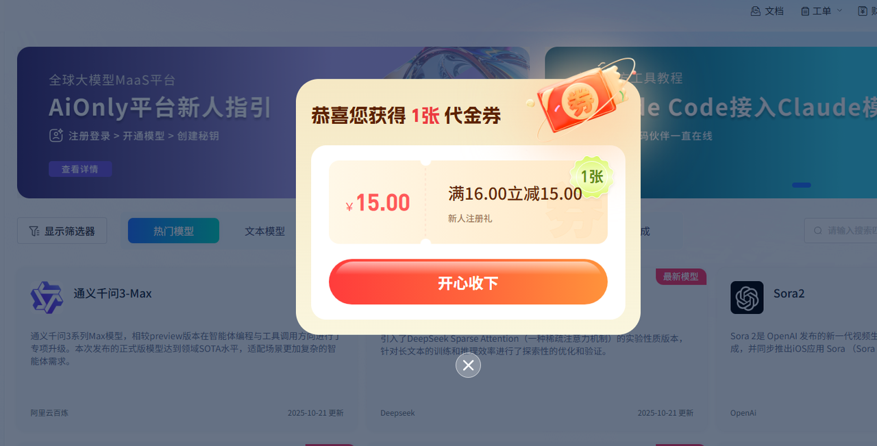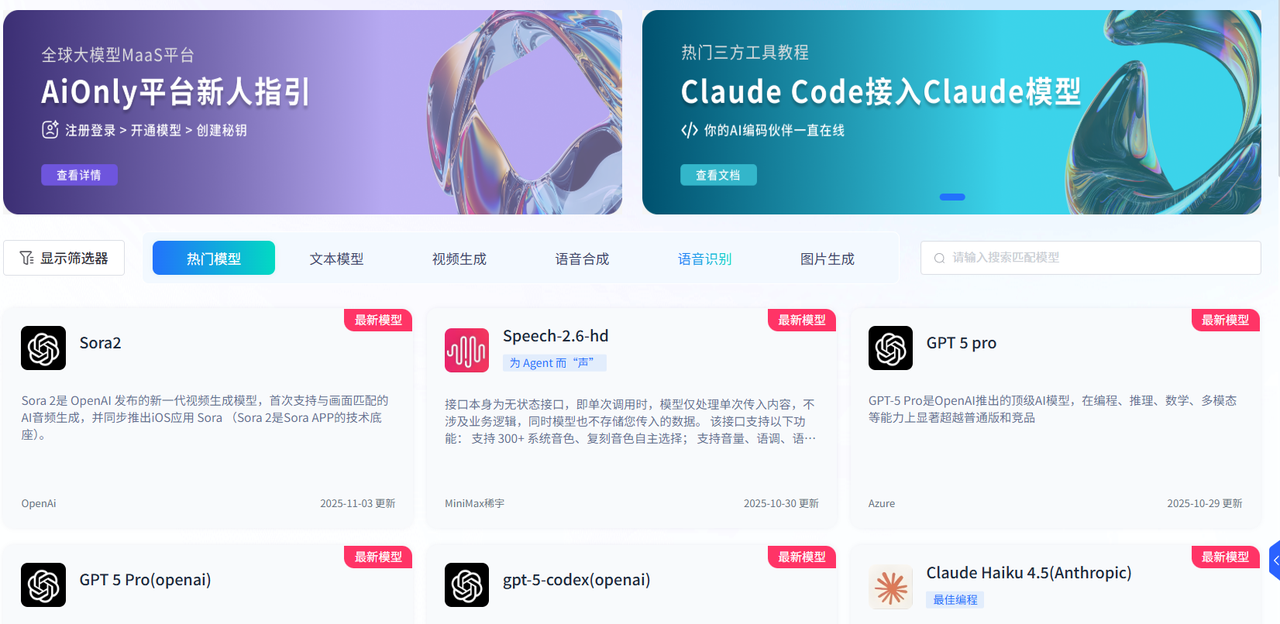 第一步:浏览模型广场 访问模型广场选择合适的模型:https://www.aiionly.com/modelSquare