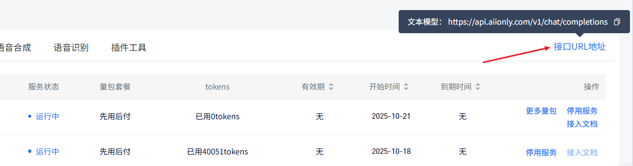 点击右侧的接口URL地址,可以看到兼容OpenAI的路径:https://api.aiionly.com/v1/chat/completions