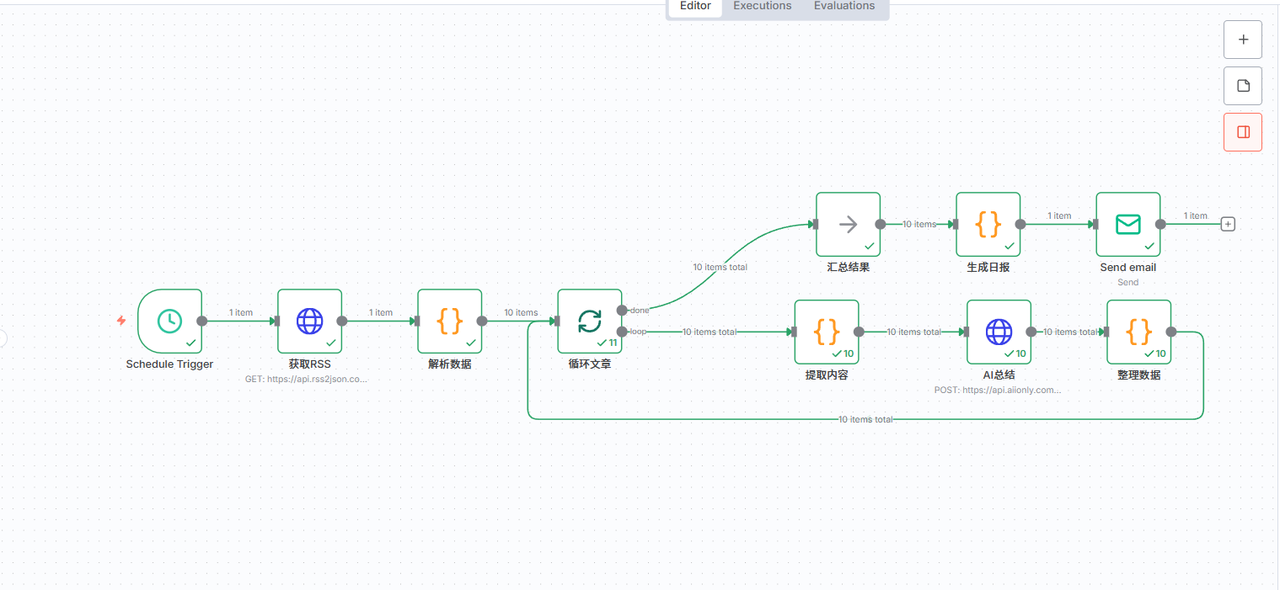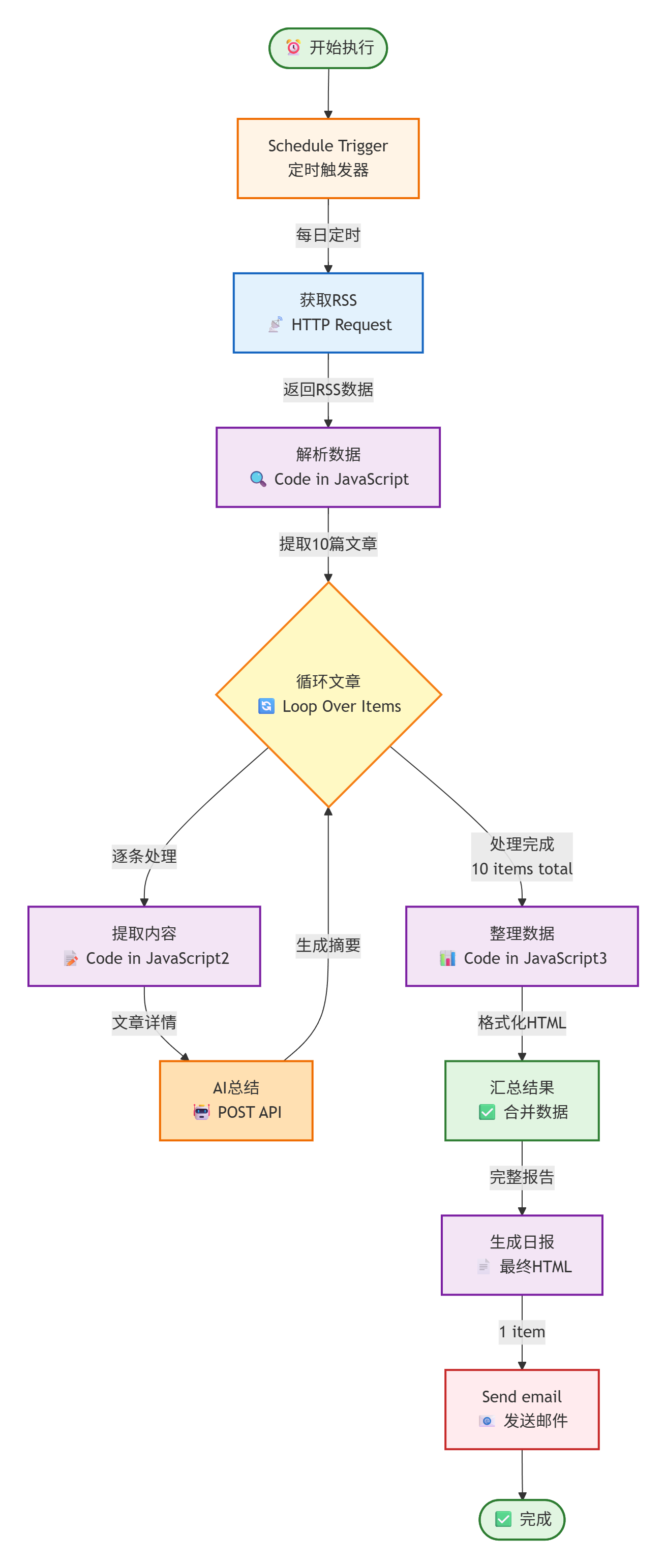 AiOnly是一个专业的大模型API聚合平台,集成了GPT、Claude、DeepSeek等数十个顶尖AI模型,通过统一的OpenAI兼容接口提供服务。文章详细介绍了从平台注册、获取API Key、开通模型的完整流程,并展示了三个实际应用案例:ChatBox客户端接入、Cherry Studio AI助手平台集成,以及使用N8N构建的每日资讯早报自动化工作流(包含RSS获取、AI智能总结、HTML格式化和邮件发送等功能)。平台具有全球节点覆盖、安全认证、成本优化等优势,为开发者和企业提供了便捷高效的AI能力集成解决方案。