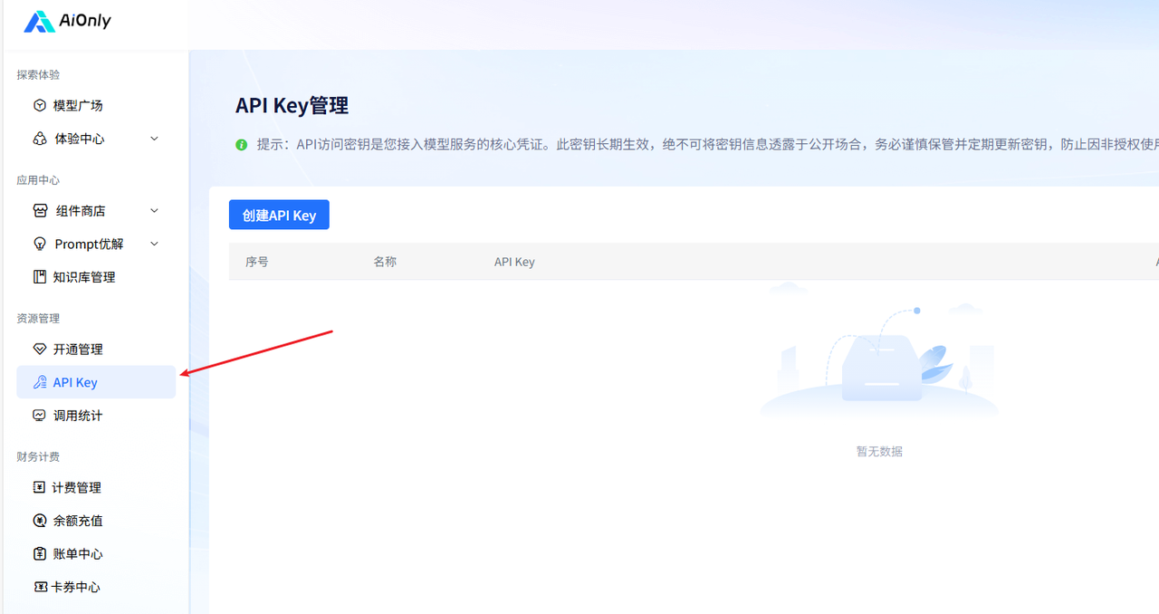 进入到APIKey页面(直达链接):https://www.aiionly.com/keyApi