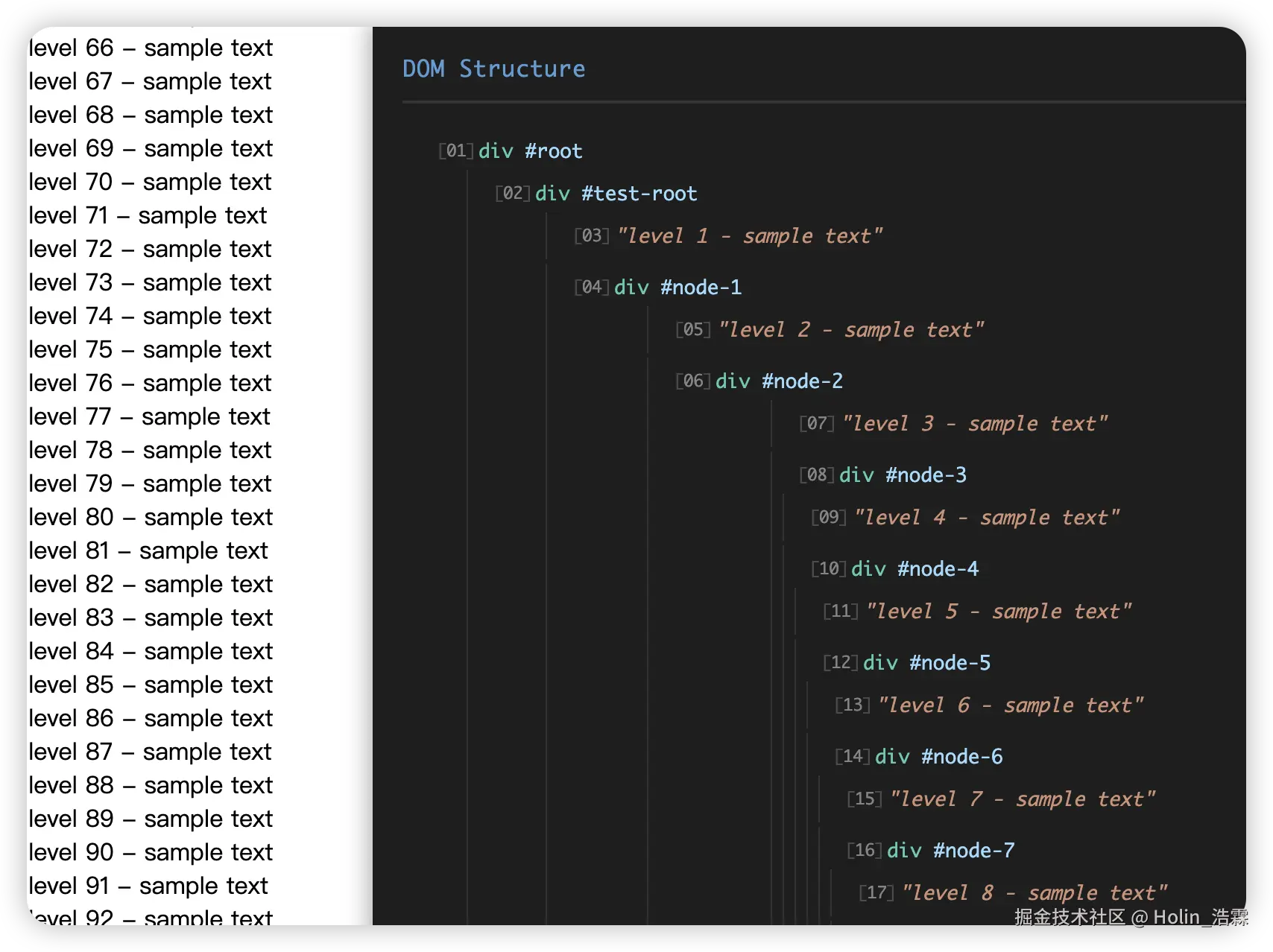 用途:用于在浏览器中触发大量 DOM 创建,观察 time-slicing 的效果与性能影响。