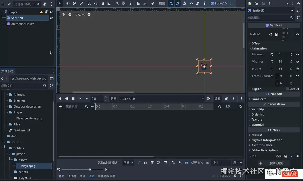 在上一节的课后作业中,我们需要完成攻击动画的制作,并将攻击绑定到J键。现在我们先来实现这个功能,这将为我们后续学习状态机打下基础。