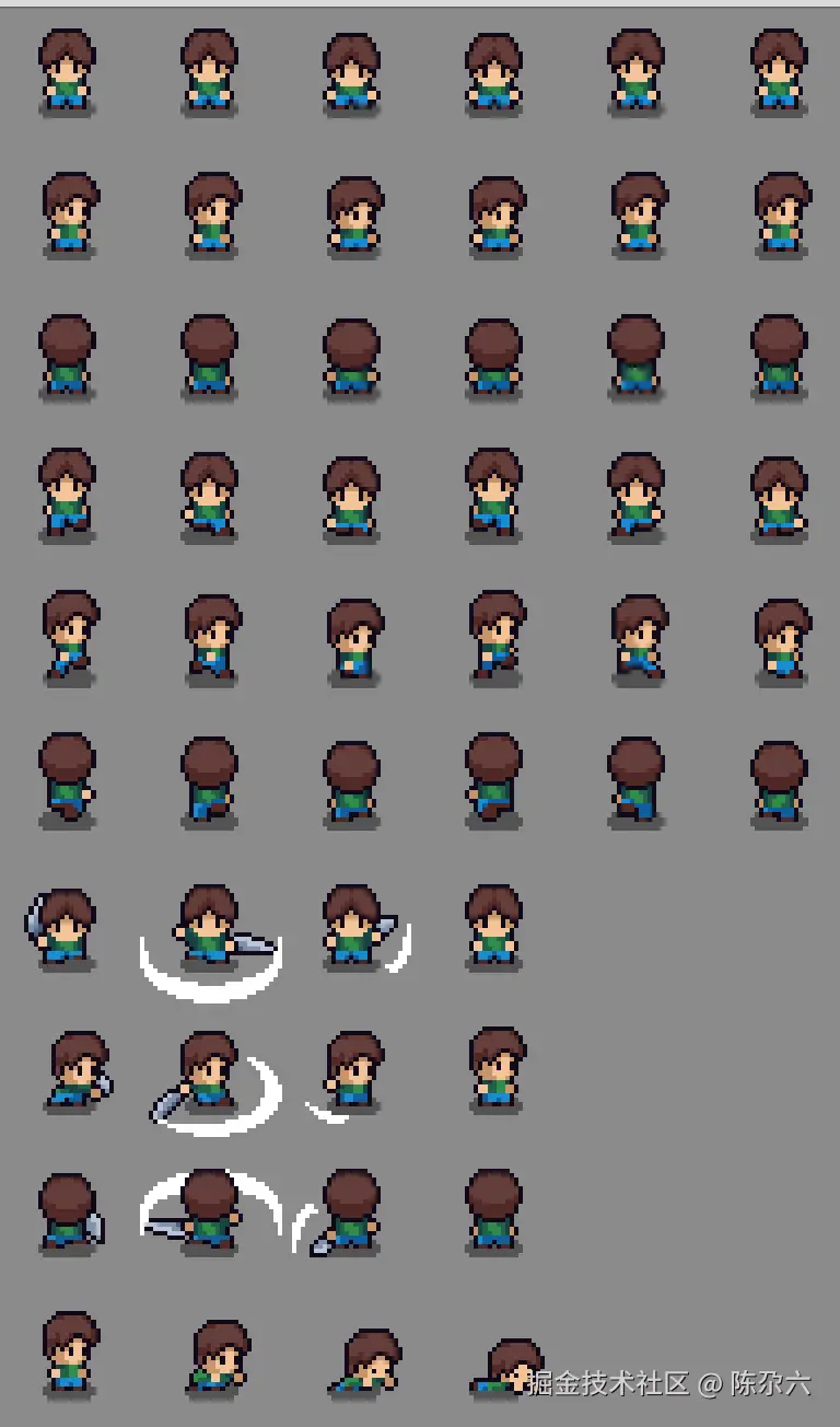 先来看下图片,可以发现攻击的动画只有4帧,而行走和待机有6帧。