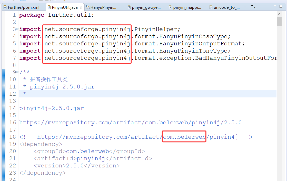 原来的net.sourceforge.pinyin4j,转到了com.belerweb
