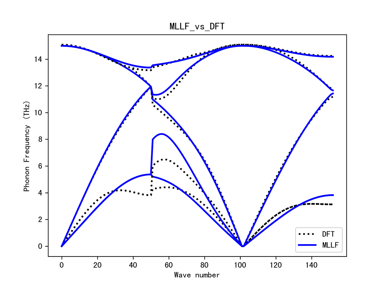 可以看到,由于我们分子动力学步数只有 500,最终两者声子谱相距并不小。因此,想要得到更好的效果,可在训练时,增加 INCAR 中分子动力学步数和提高计算精度。