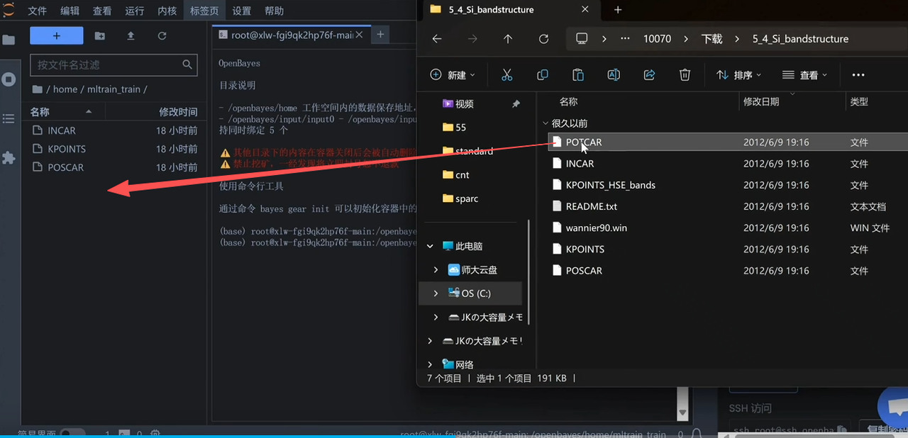 然后上传准备好的硅赝势,这里可以使用「官网例子」里的赝势 POTCAR。