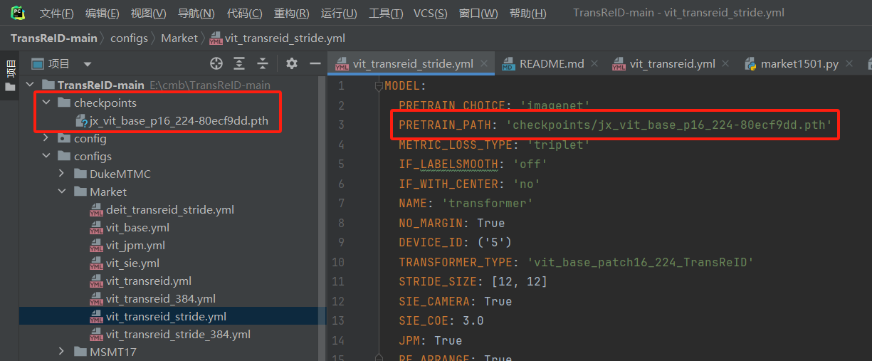 python train.py --config_file configs/Market/vit_transreid_stride.yml MODEL.DEVICE_ID "('0')"