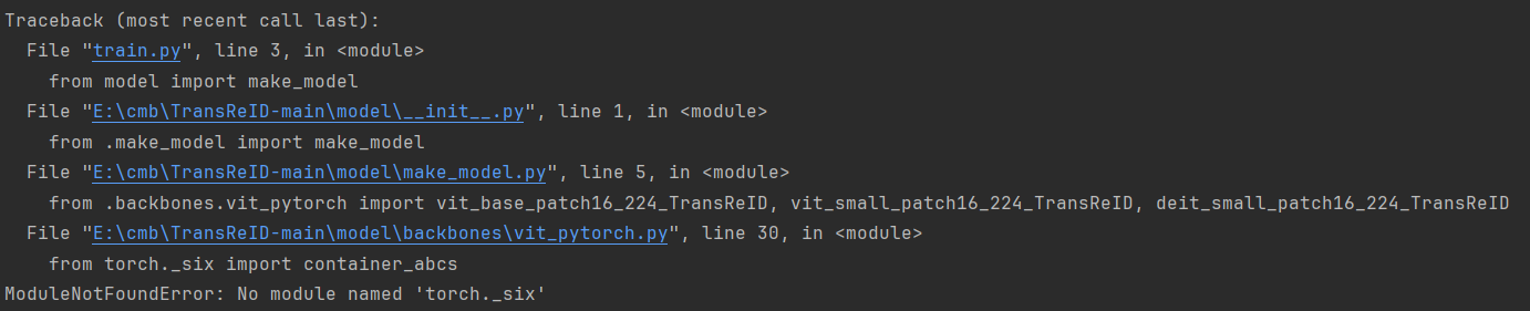 vit_pytorch.py文件,注释from torch._six import container_abcs,并添加:import collections.abc as container_abcs