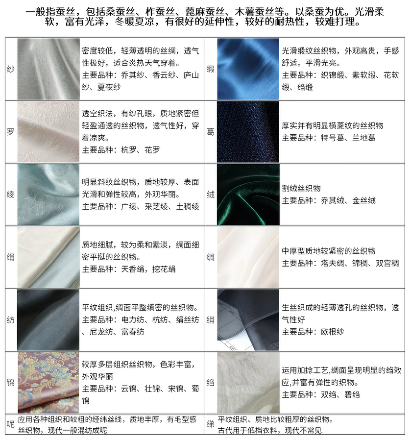 鉴别桑蚕丝可以摩擦面料,会有独特的 "丝鸣" 现象。