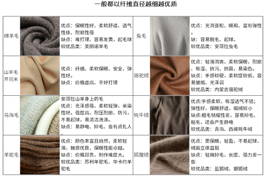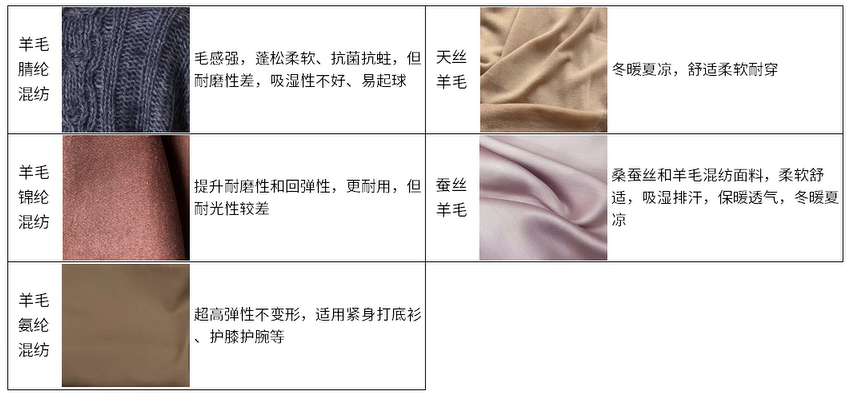 毛几乎和所有面料都能混纺,除了提到的这些还有很多,天然毛一般更防水,也更耐拉扯 。