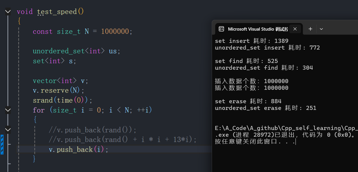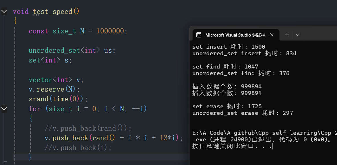 cout << "unordered_set erase 耗时: " << end6 - begin6 << endl << endl;