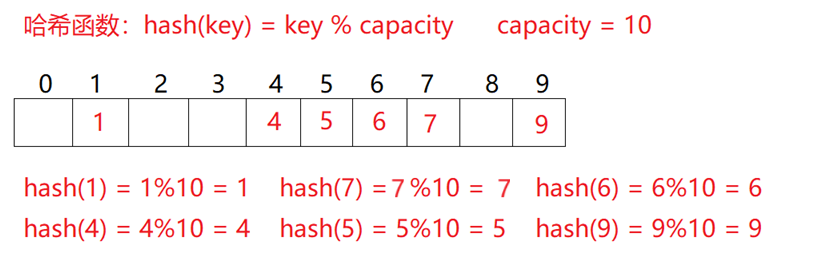 hash(key) = key % capacitycapacity为存储元素底层空间总的大小