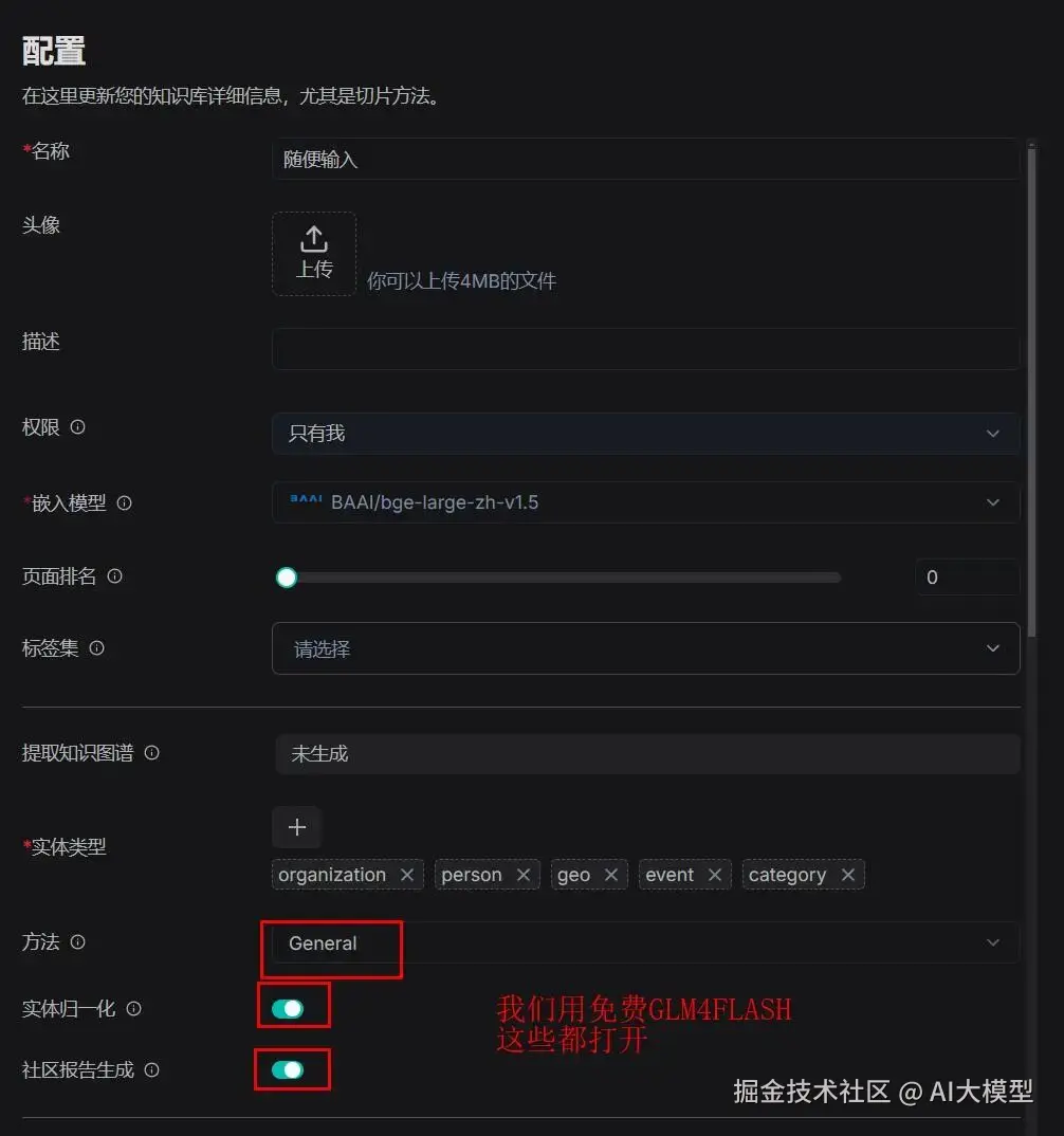 1开启功能:进入数据集配置页→"高级设置"→找到"知识图谱构建"开关并打开(图4红框位置);