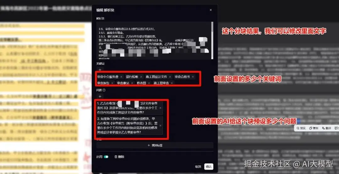 4保存生效:调整完成后点击"确认分块",生成最终"知识卡片"。