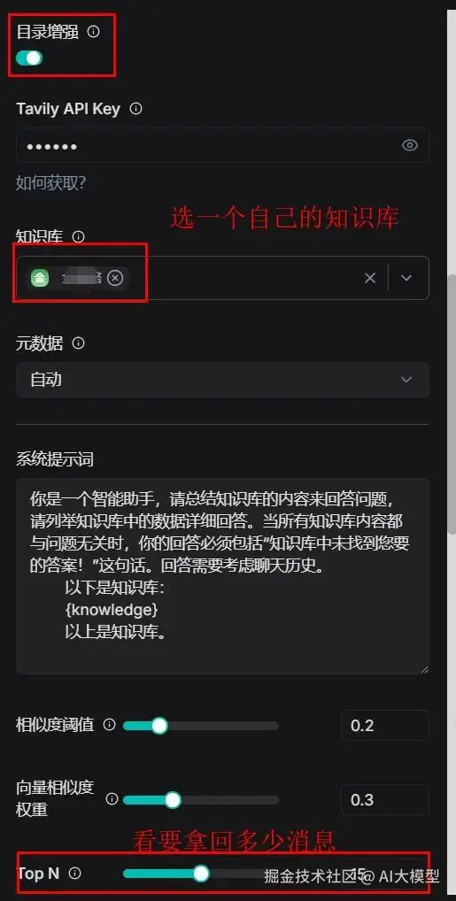 【如果你的知识库没选目录增强,就不要选使用目录增强。】