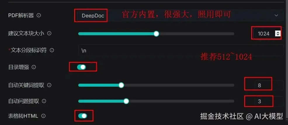 1参数默认即可:RAPTOR的聚类层级、总结长度等参数无需手动调整,系统会根据文档长度自动适配;可以让AI给你合适的参数,我这个也是在测试的。