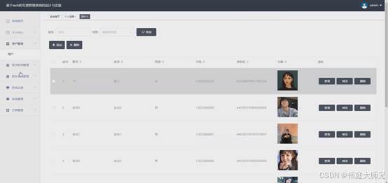 这个界面是用来由管理者控制和维护用户数据的地方,如图所示为用户管理的界面(参见图4-1)。该界面的核心目的是提供用户信息的管理。