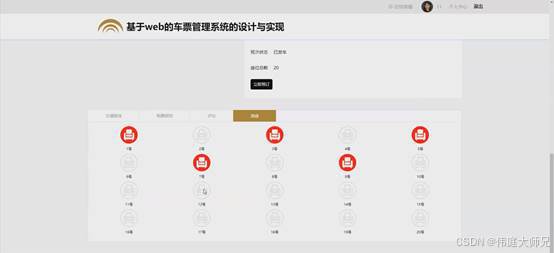 图4-4展示的就是一个车票预定界面,用户可以根据该页面对车票进行点击,预订等操作,用户在此页面可以看到已售出和未售出的座位,可以点击未售出的作为进行预订。