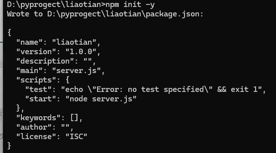 注意下路径中不要有中文,要不然npm init -y会报错。